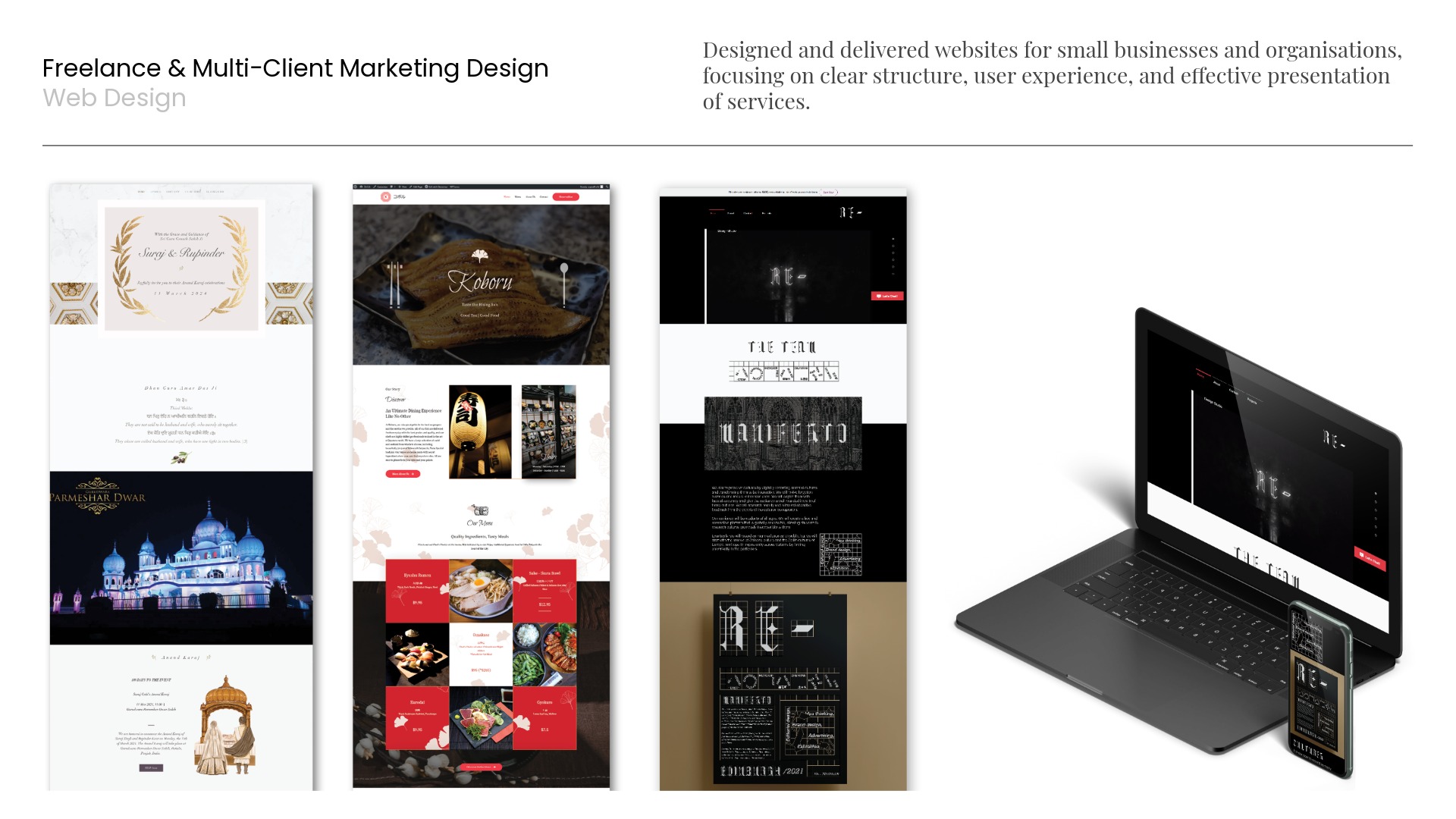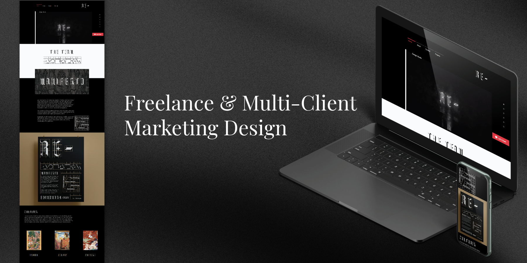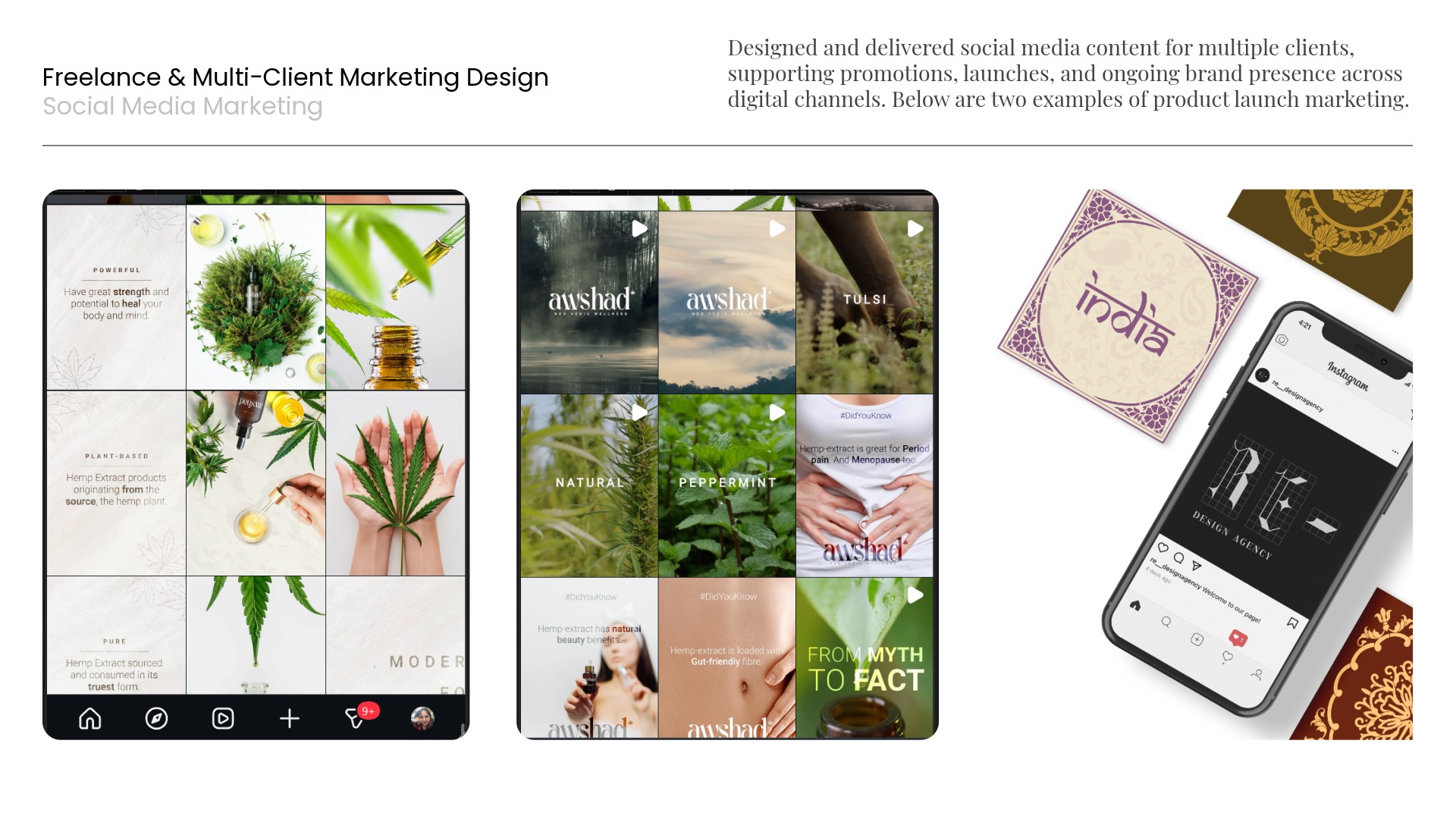 Brought together freelance and multi-client marketing design support across print, social, decks, and web, turning briefs into clear campaign assets that could adapt to different audiences, formats, and turnaround needs.