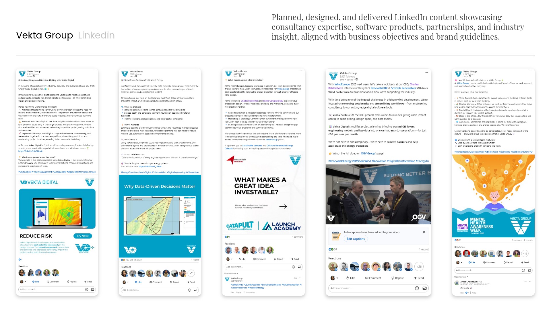 Planned LinkedIn content supported launches, insight, partnerships, and campaigns, with social-first edits for short-form video where needed.